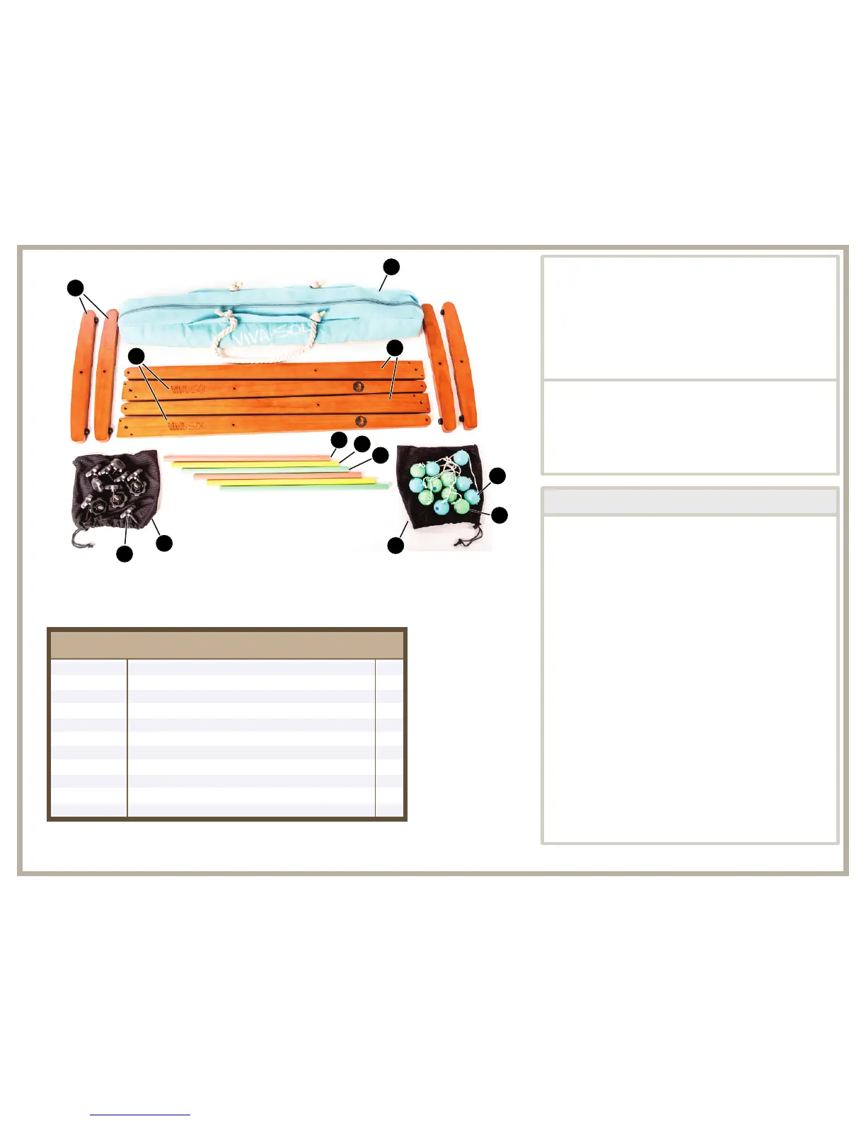Replacement Parts List for Ladderball Set.