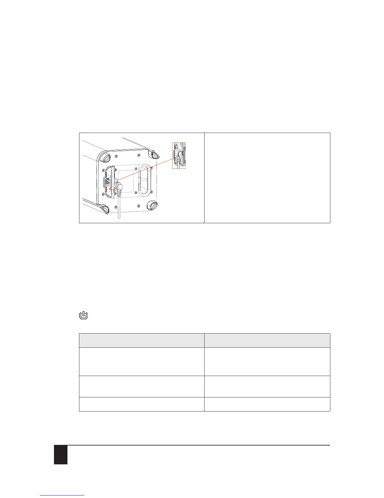 The power LED light indicates the status of the internal battery.
