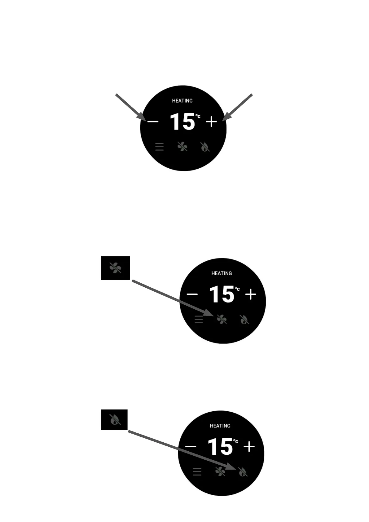 To set the room temperature, press the plus (+) or minus (-) symbols repeatedly unl the display is showing the