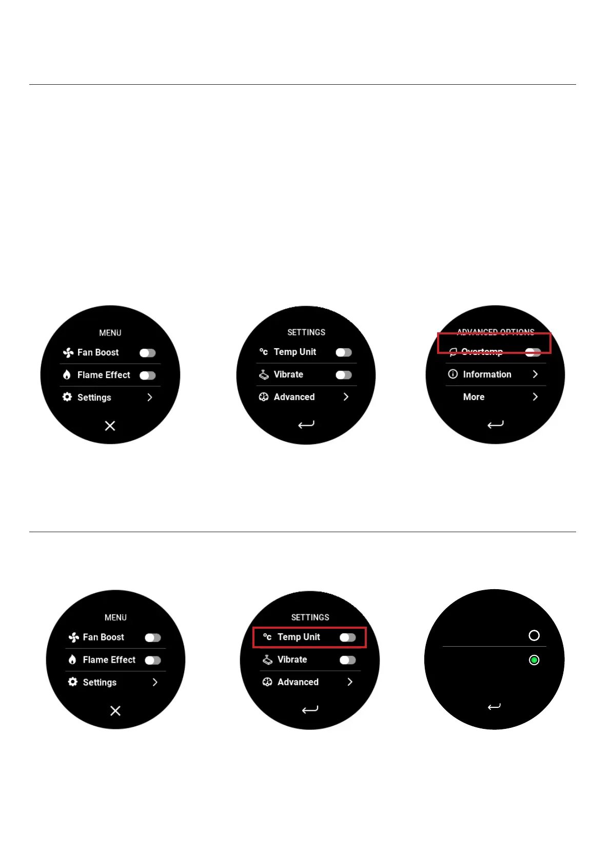 Go to the advanced opons on your remote and toggle the "Overtemp" buon.