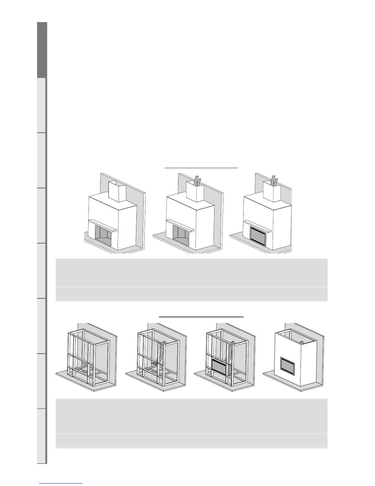 or a false chimney cavity. The DF-Series fireplace is provided with stando rails installed to the outside