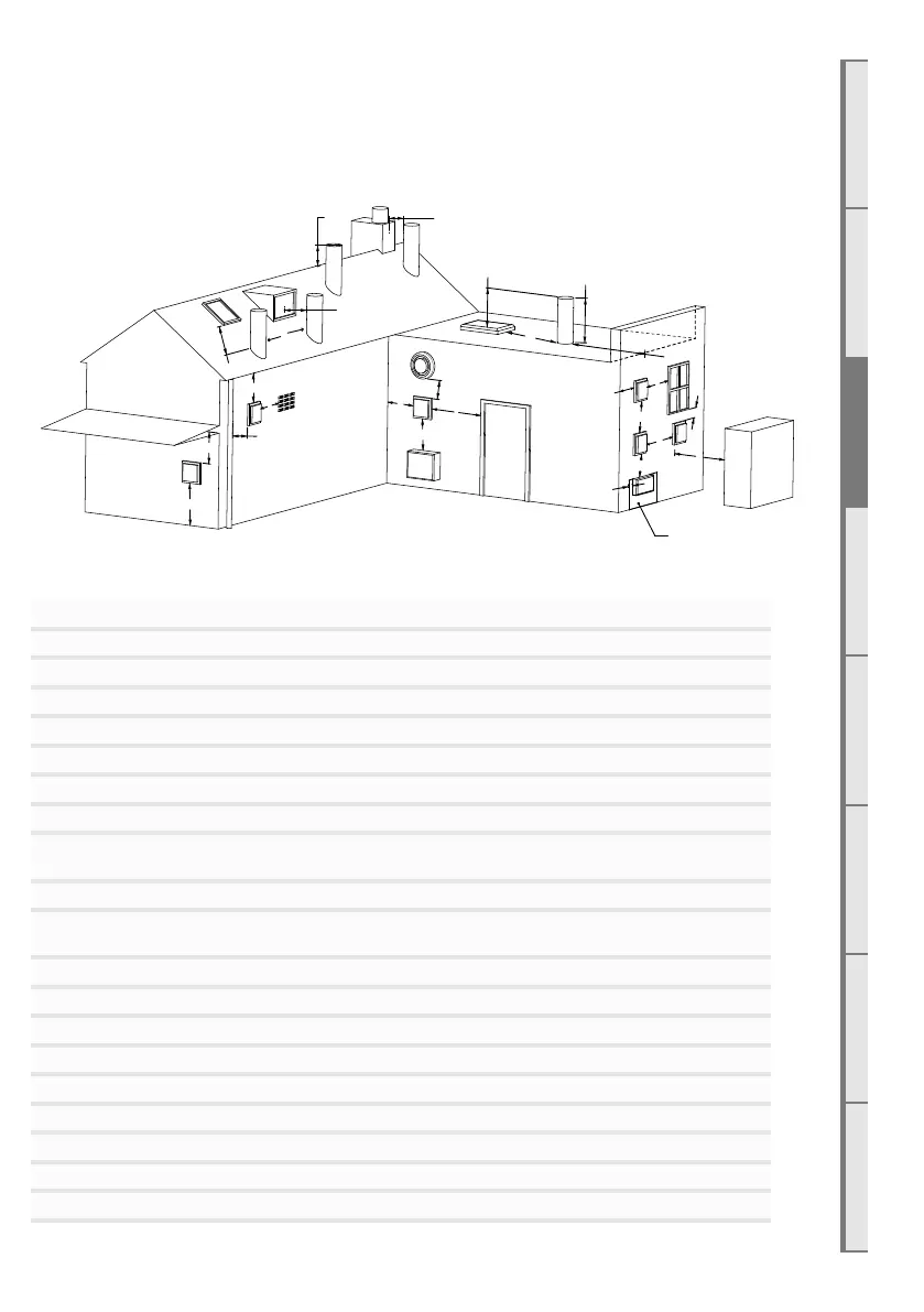 Some of the minimum clearances for a fan assisted wall terminal are listed below; please refer to AS/
