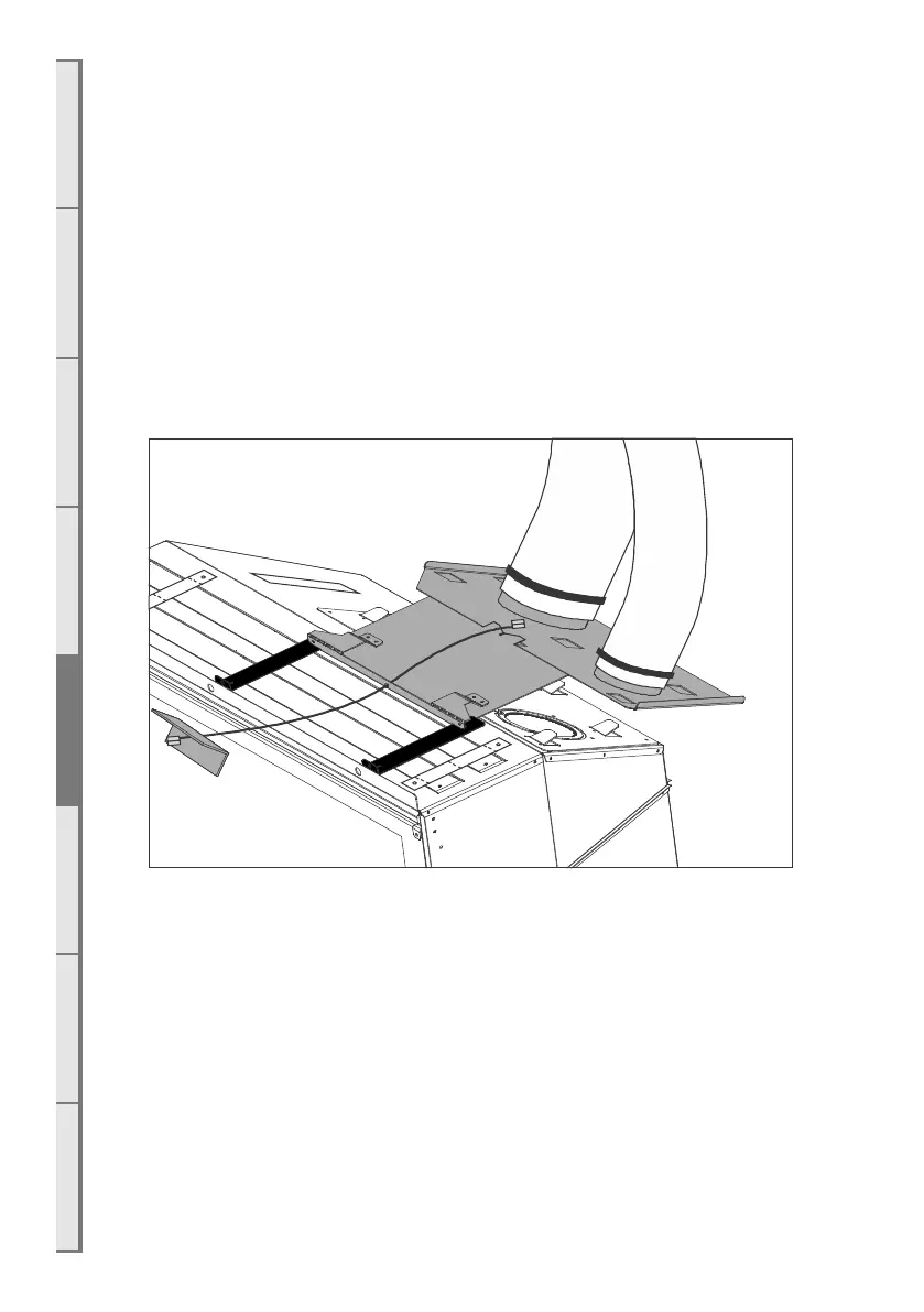 the rails (highlighted in the diagram below). Use the cable tool provided for pulling the flue spigot plate