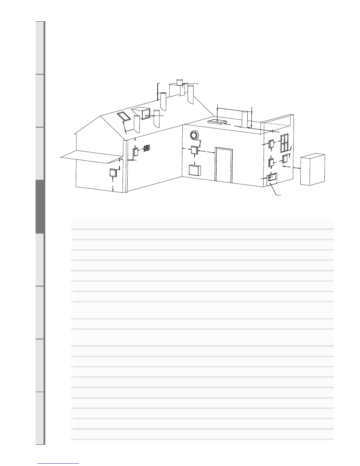 Some of the minimum clearances for a fan assisted wall terminal are listed below; please refer to