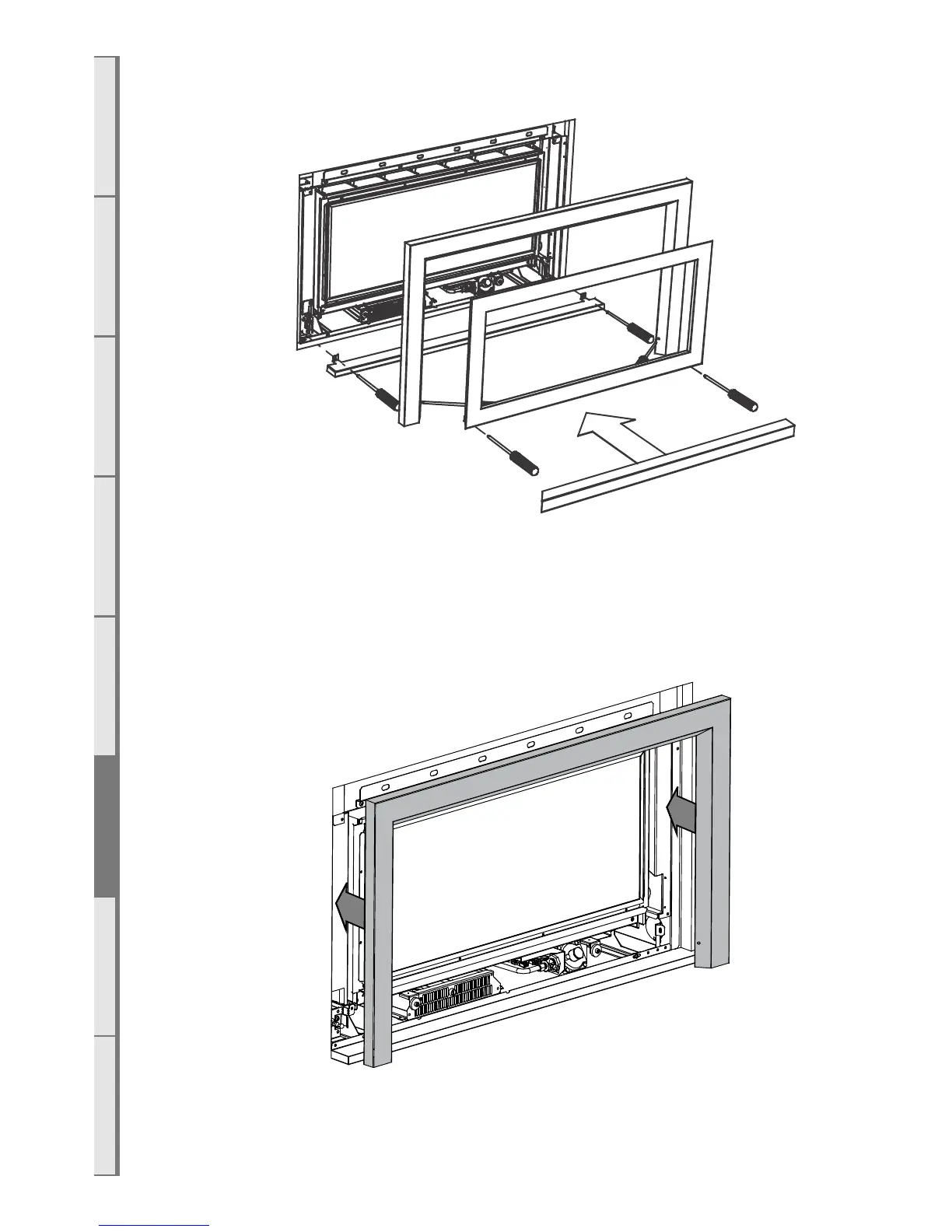 Insert the fascia so that it is parallel with the front of the gas fireplace. The Hex-nuts attaching