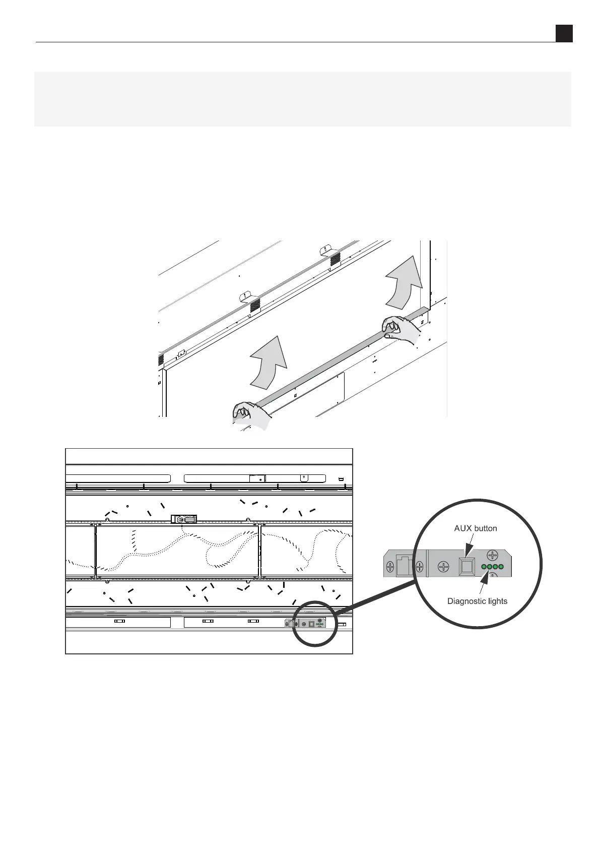 To access the AUX buon, remove the boom trim by liing the trim upwards then sliding out (as shown in the