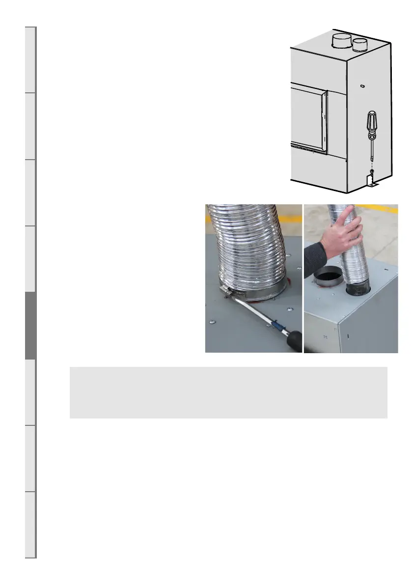 WARNING: The flue connection MUST be secured with the clips provided and tape