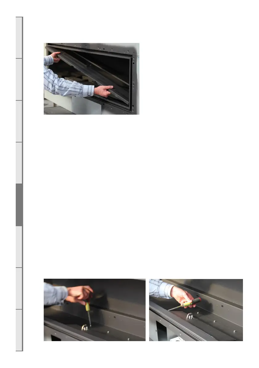 Remove the fuelbed tray from the fire box, by lifting one end up into the top corner and then