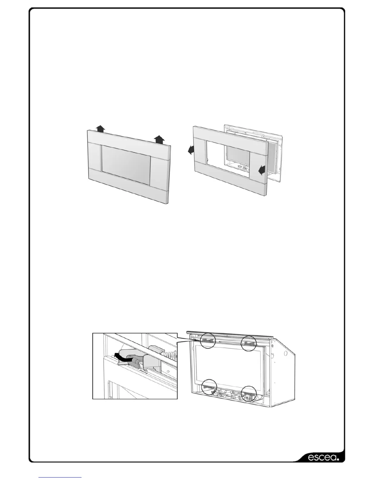 The ST900 fascia attaches to the fireplace by four hooks. To remove the