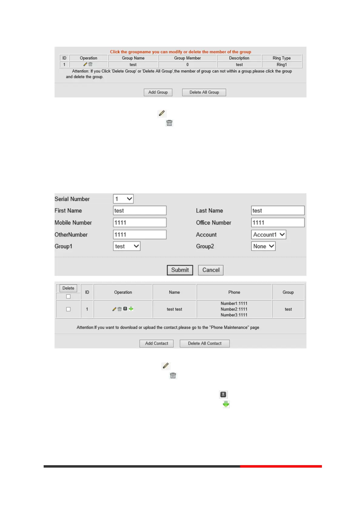 You can delete an existed Contact by click , if you want to delete all Contacts, you just ought