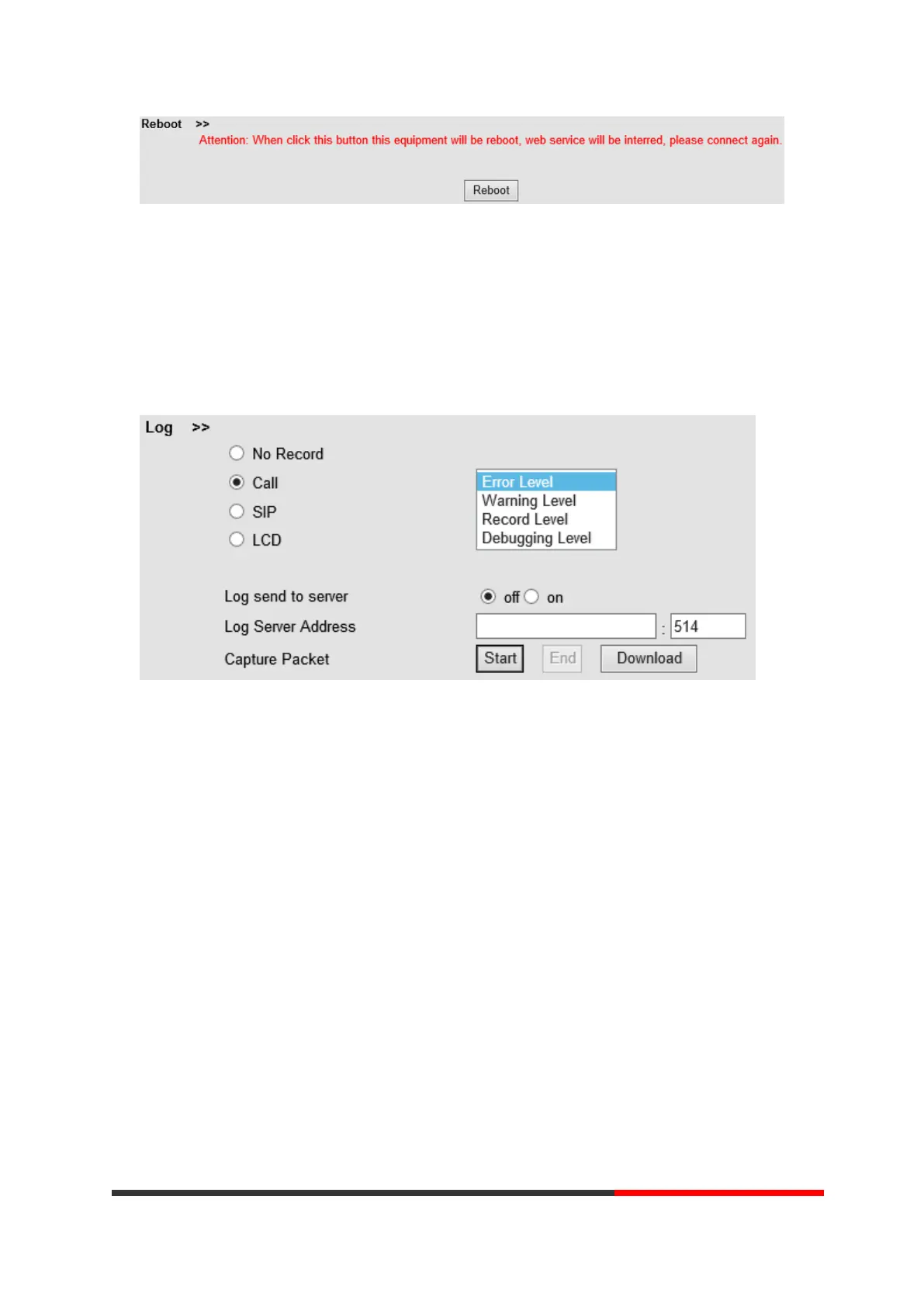 This feature is use for the administrator to managing the equipment, like debugging, SIP etc,. If