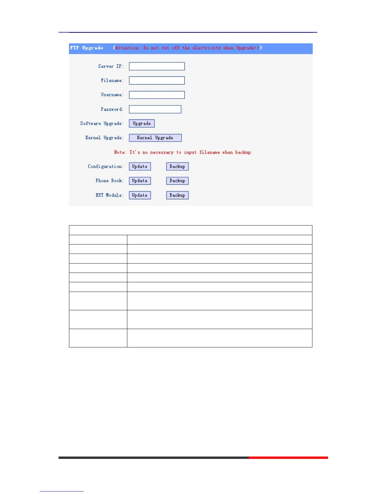 You can upgrade the software, kernel and configure file for the phone use tftp.