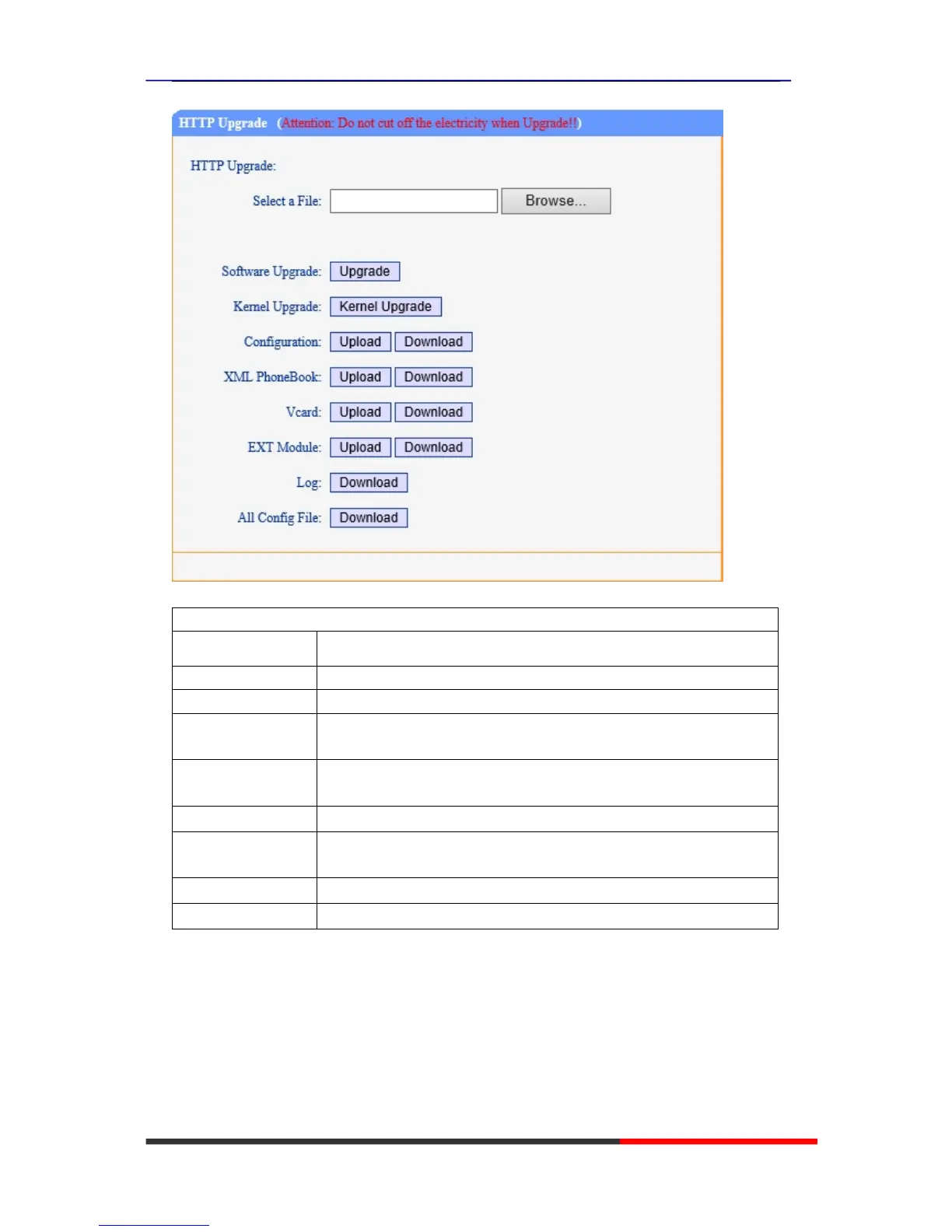 Select a File Browse the software/kernel/config file you want to upgrade from http