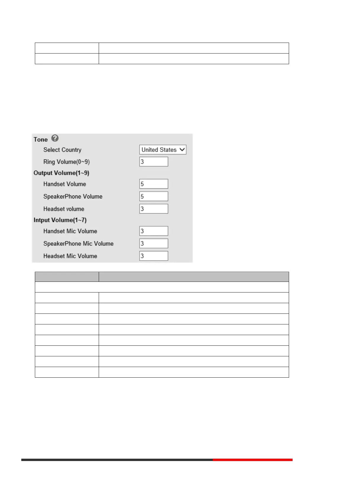 The handset volume default is Lv5, the range is 1~9.