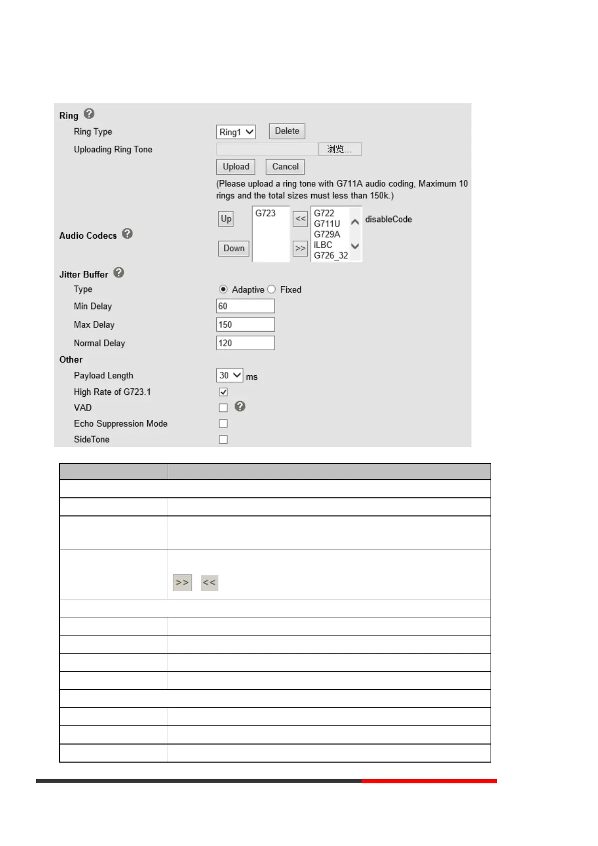 Please upload a ring tone with G711A audio coding, Maximum 10 rings and the total sizes must