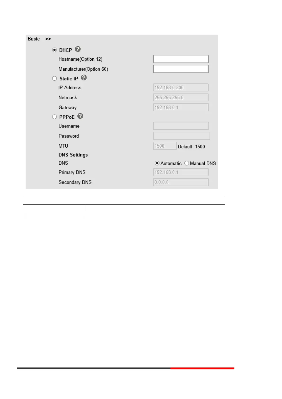 Network Connection Mode has DHCP, Static IP, PPPoE.