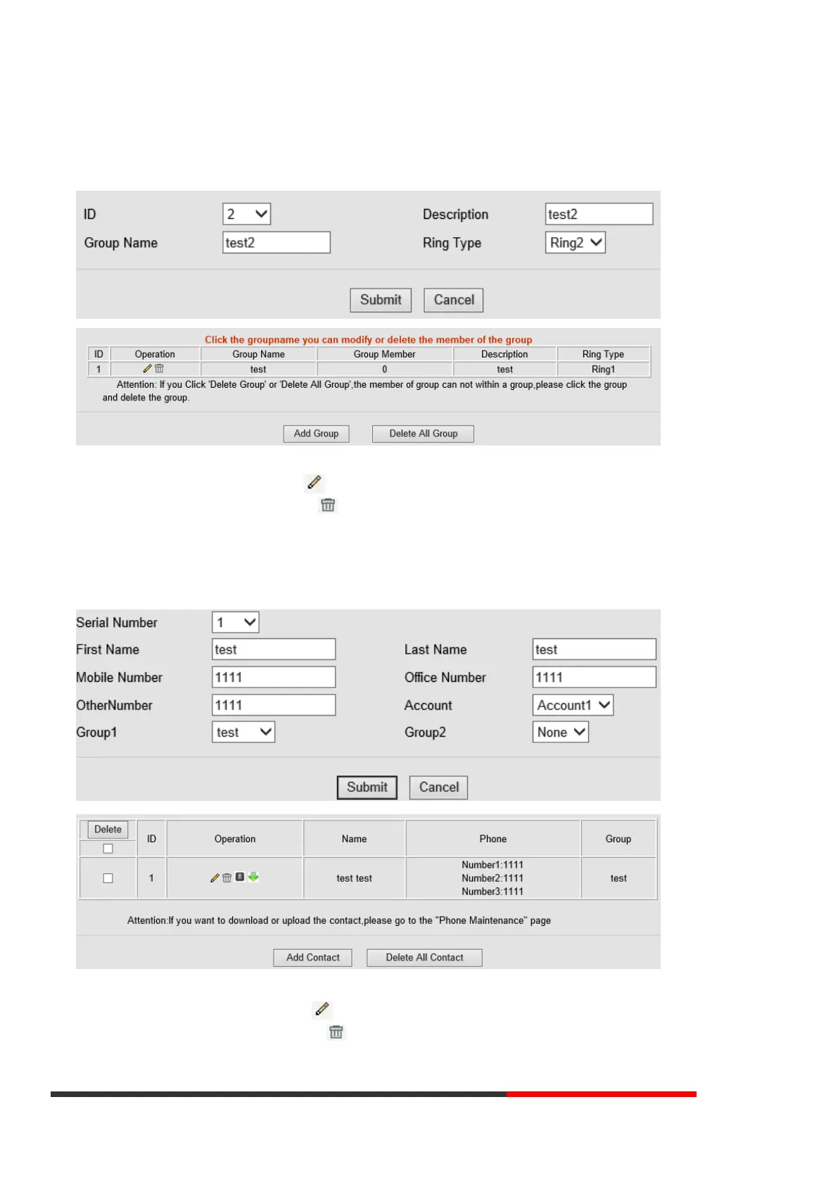 The phone book including Group, Contact, LDAP and Ban list, please review the following for more details:
