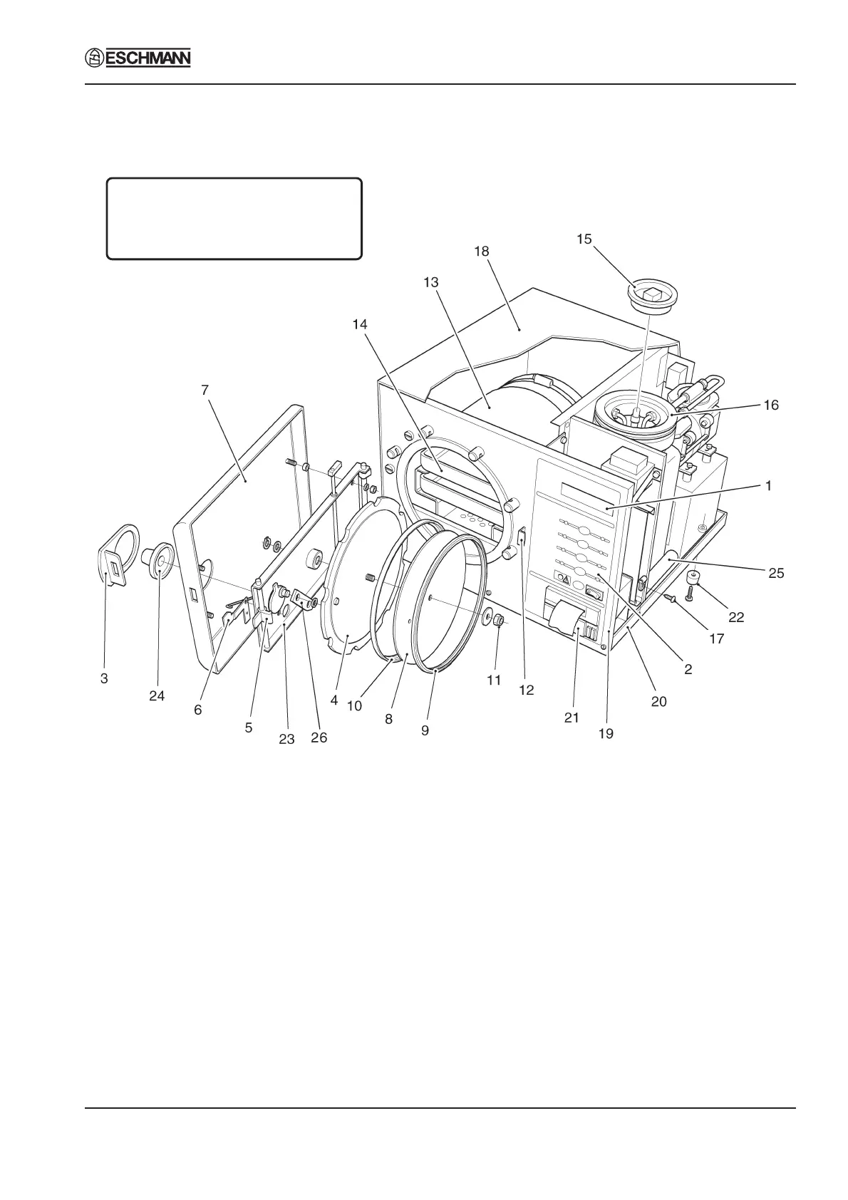 1 Process display window 10 Seal retaining rim 19 Front panel