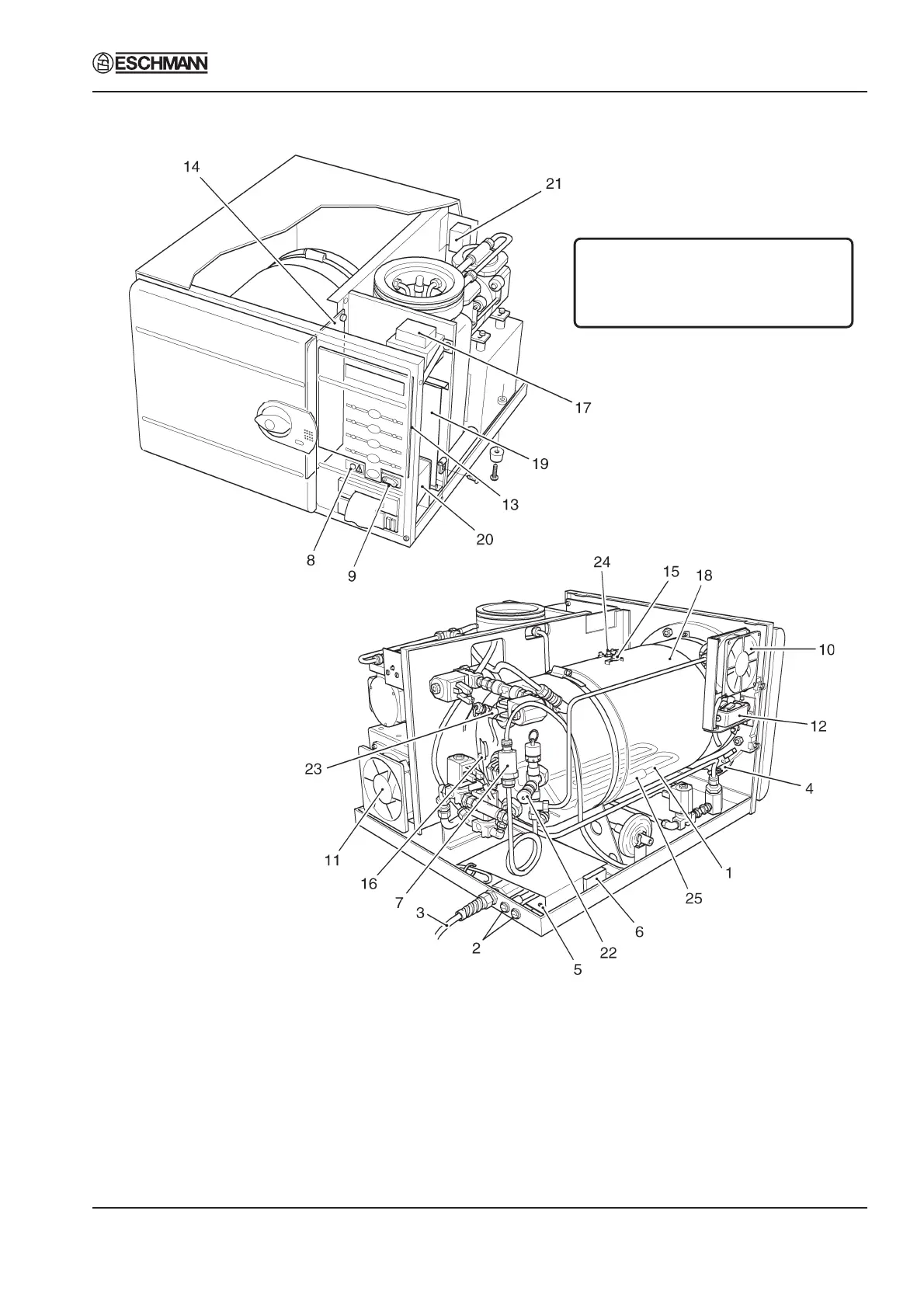 2 Mains fuses 10 Enclosure fan 18 Band heater