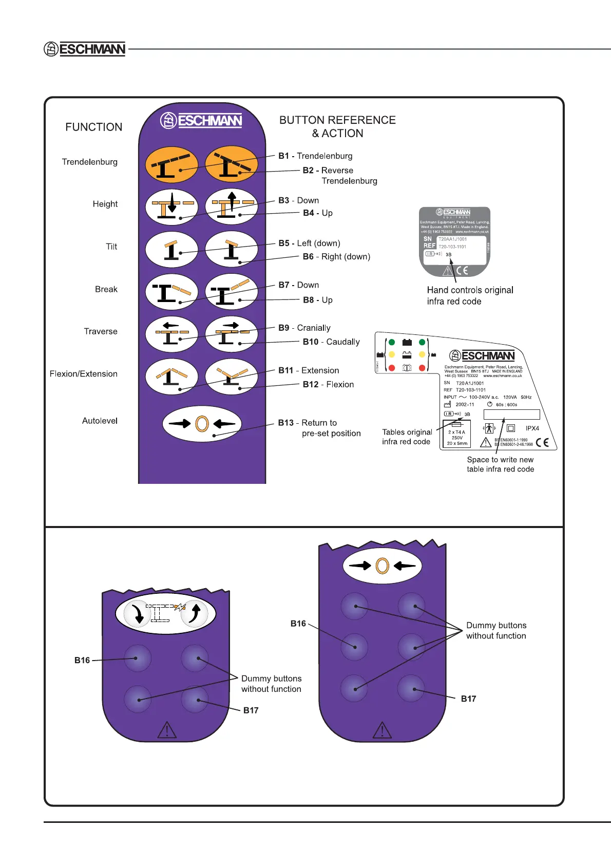 eschmann T20-a - Handset Button Functions and Serial Labels; Old and New Infrared Handset Buttons