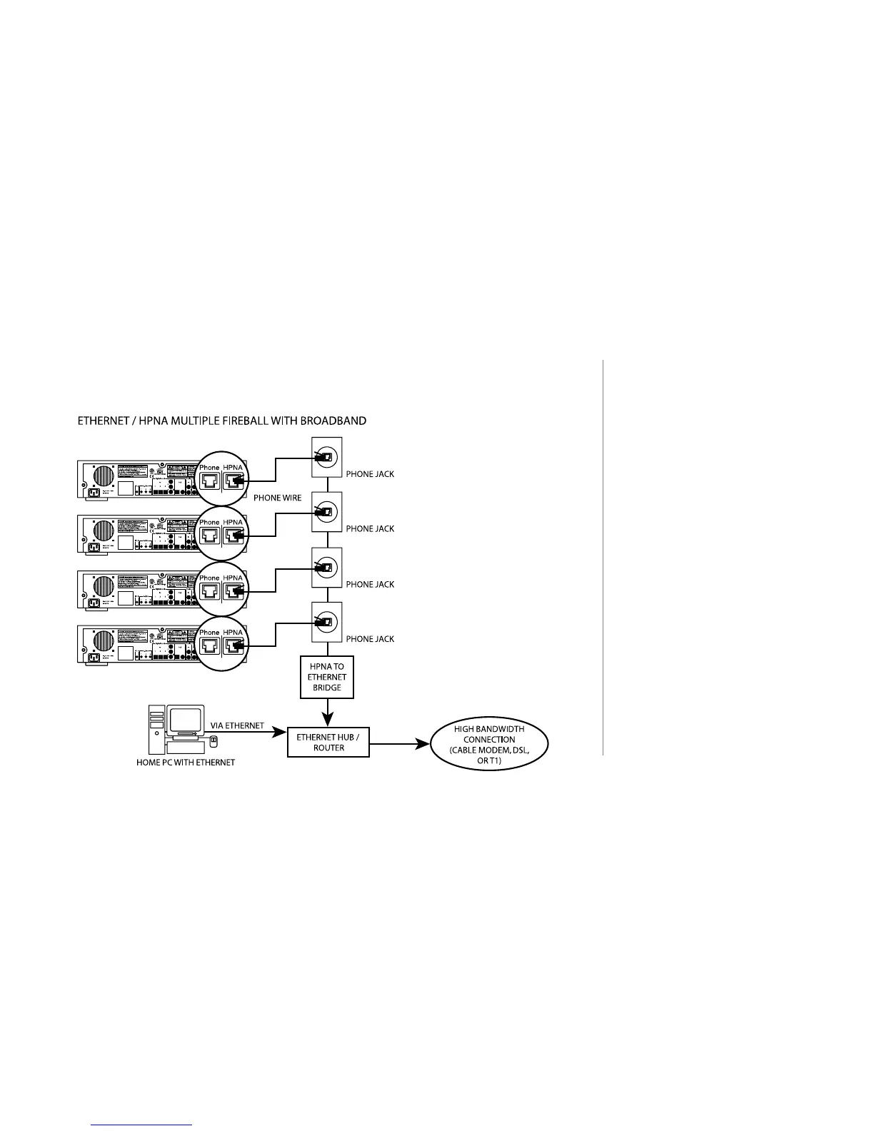 Multiple FireBalls can connect to the Internet using an HPNA to Ethernet Bridge then