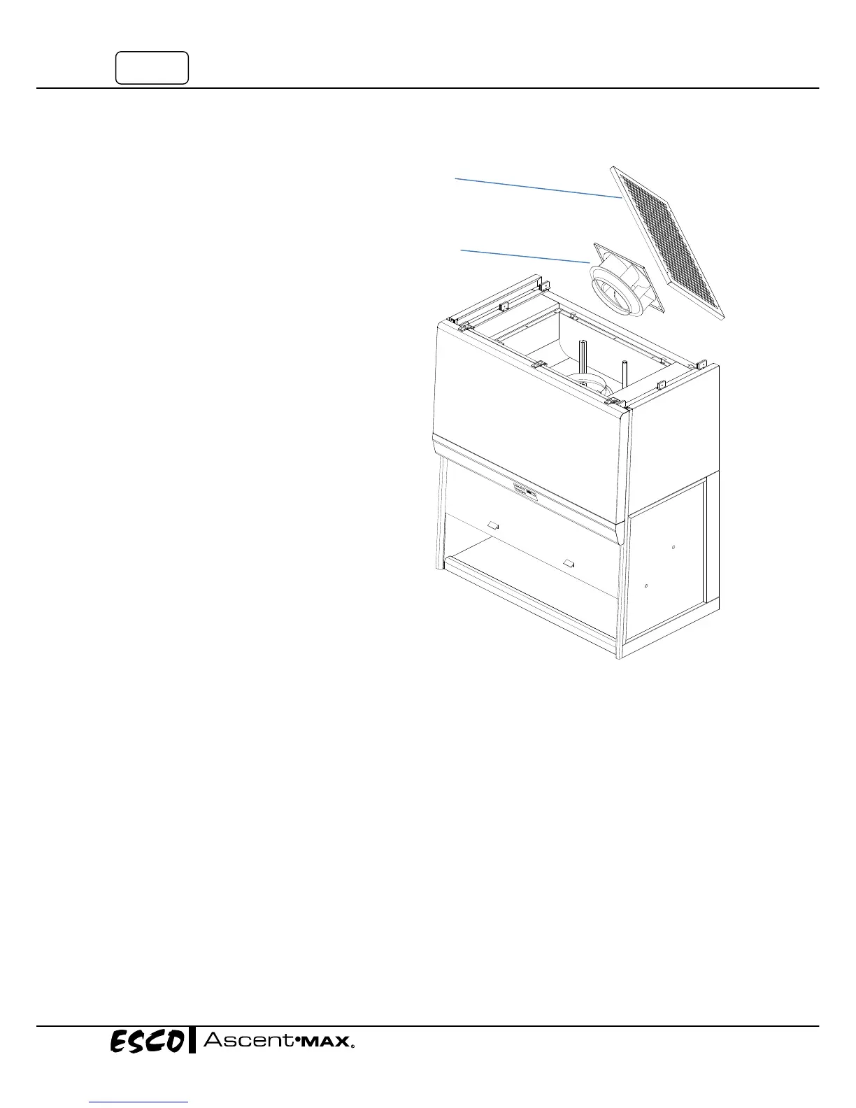 Therearetwofluorescentlampsintheductlessfumehood;theyarelocatedbehindthebluepanelatthetop