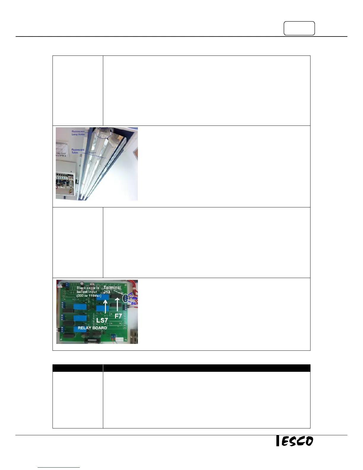 • Checkforanylooseorbadconnectionbetweenrelayboard,fluorescentlamp