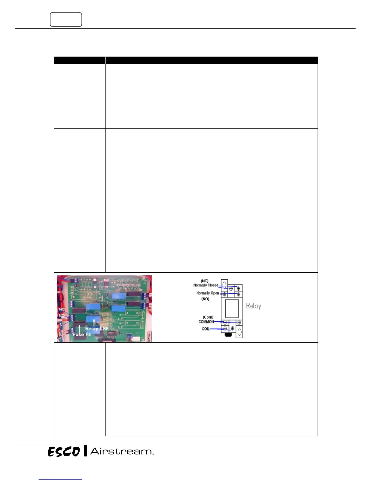 • Check the DC voltage to the coil of the K2 relay. Voltage should be 12VDC ± 10%.