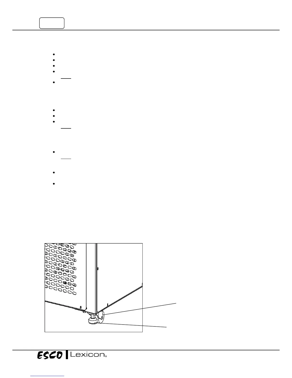 It is important that the equipment is properly leveled by positioning a bubble level on the middle shelf of the