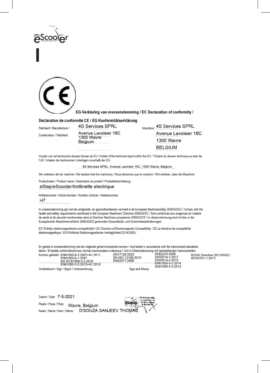 Escooter H7 - CE Certificate