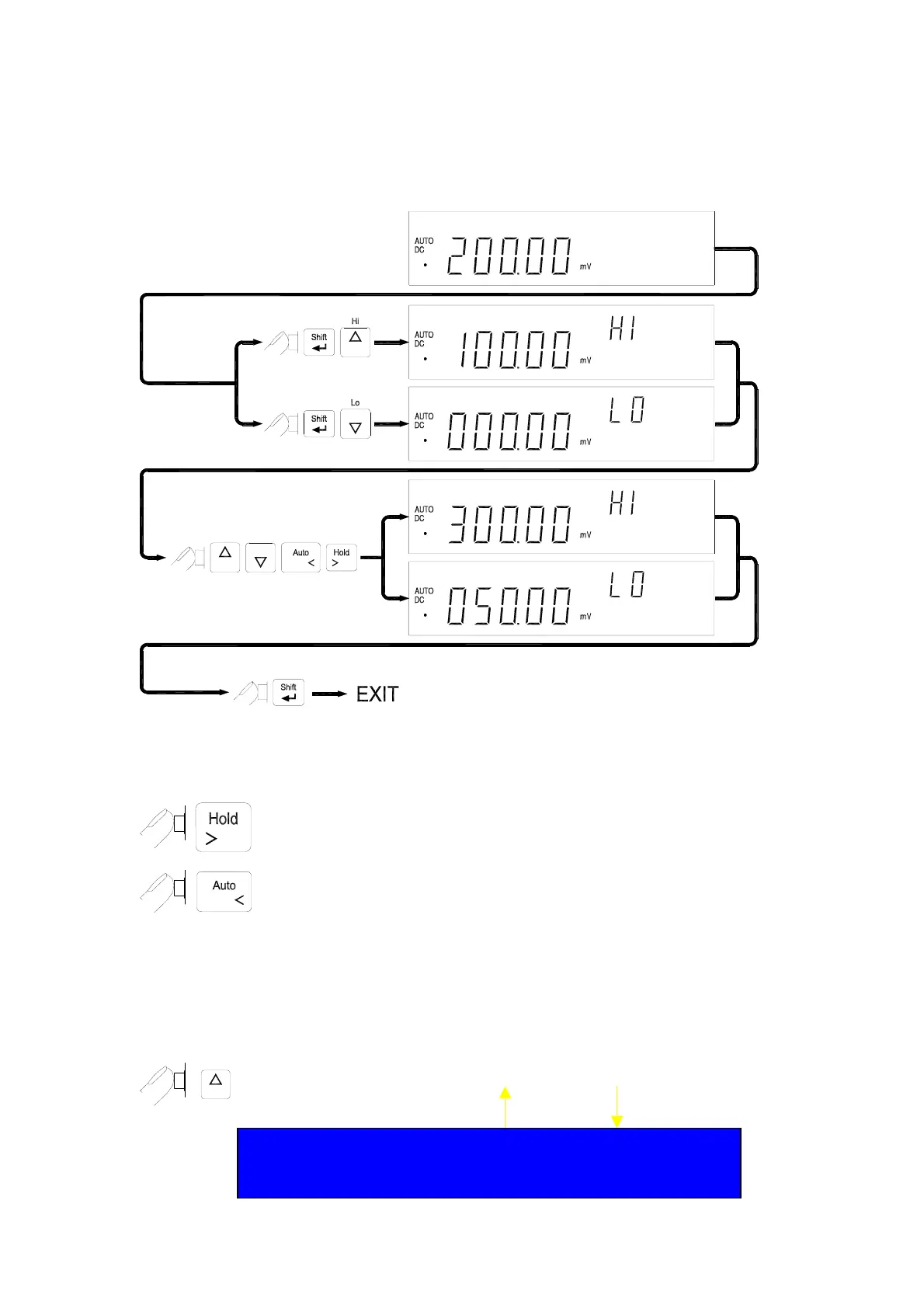 Note: 1. After set the Hi and/or the LO limits, the limits can be used for all ranges.