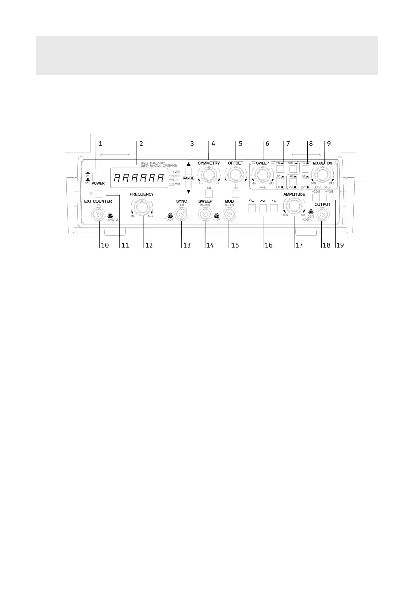 9. MODULATION / LEVEL STOP KNOB: For sweep function,