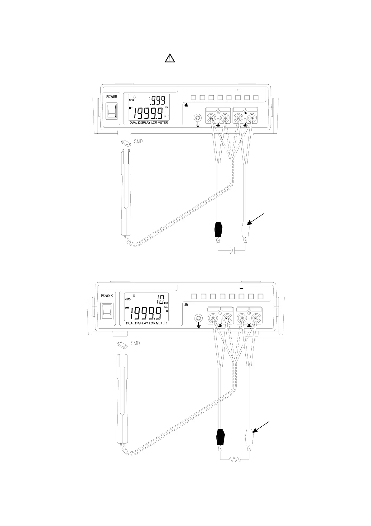 To avoid electrical hazards, discharge the capacitor to be tested before