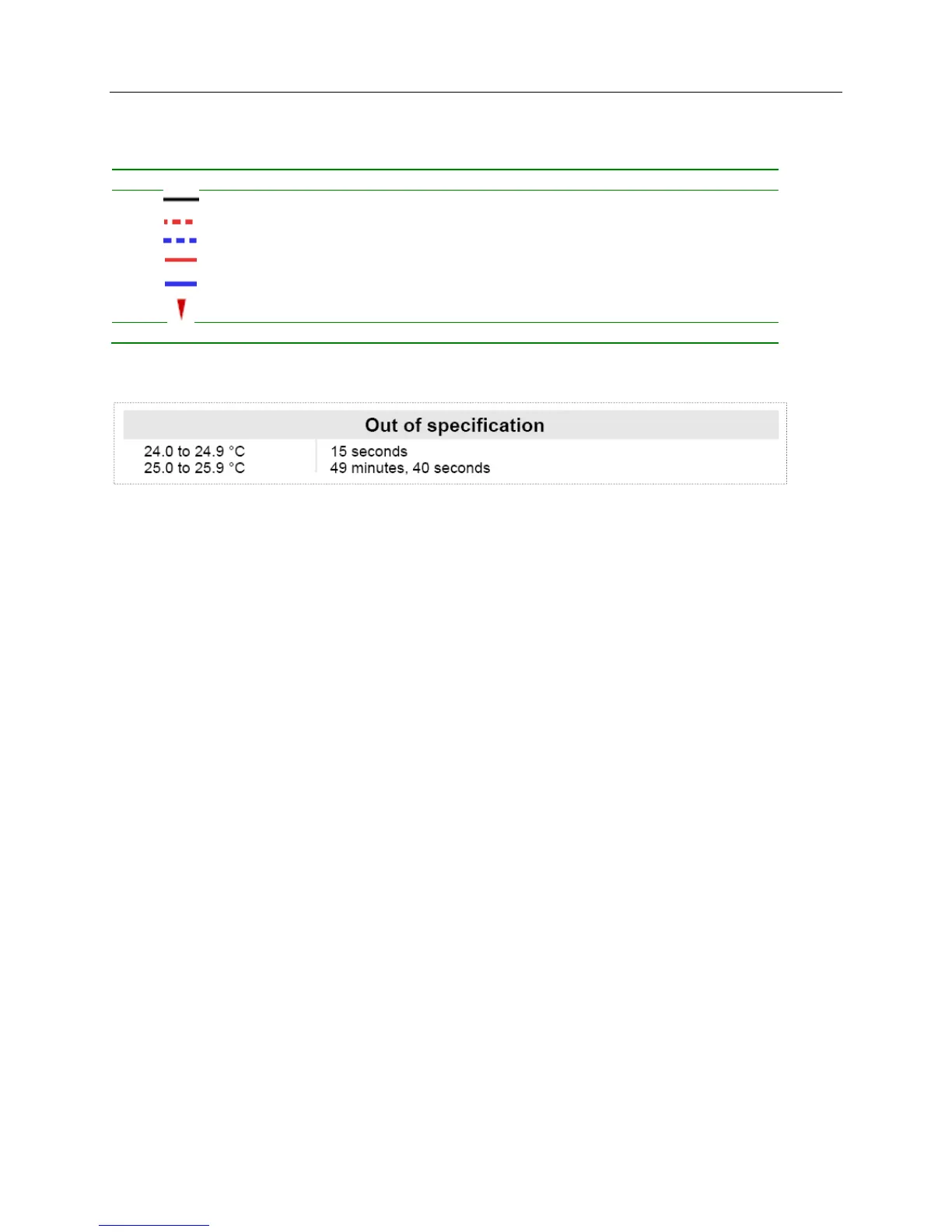 Note: if Fahrenheit temperature unit scale is selected, the accuracy of “Out of specification” report summary