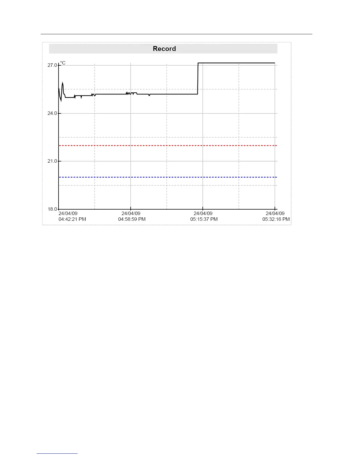 Catastrophe Alarm set to +60 °C Low Catastrophe Alarm set to -20 °C. Note that the graph contains coloured