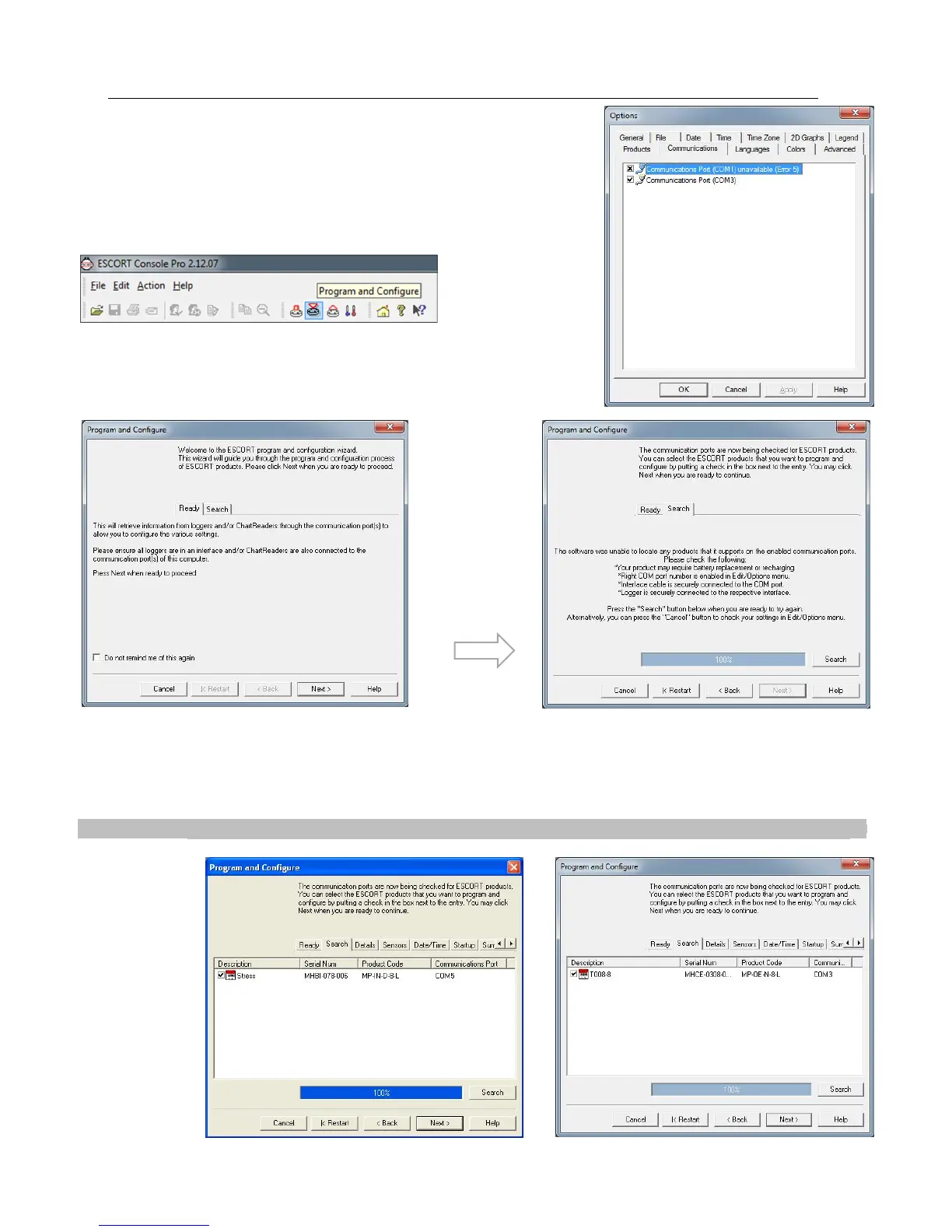 The Program and Configuration Wizard finds the communication port that the