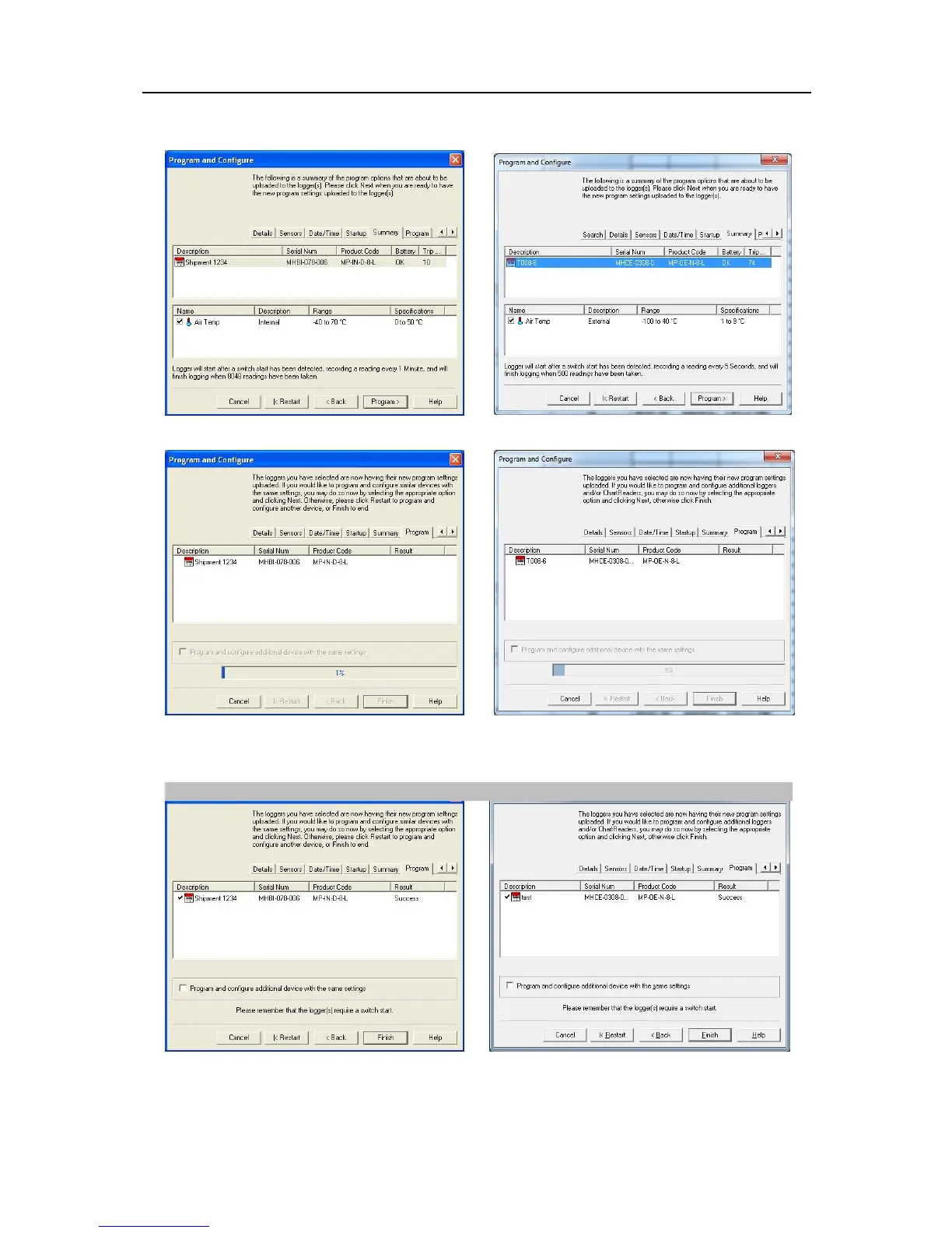 If the program settings have been uploaded correctly the blue progress bar will show 100% and the word