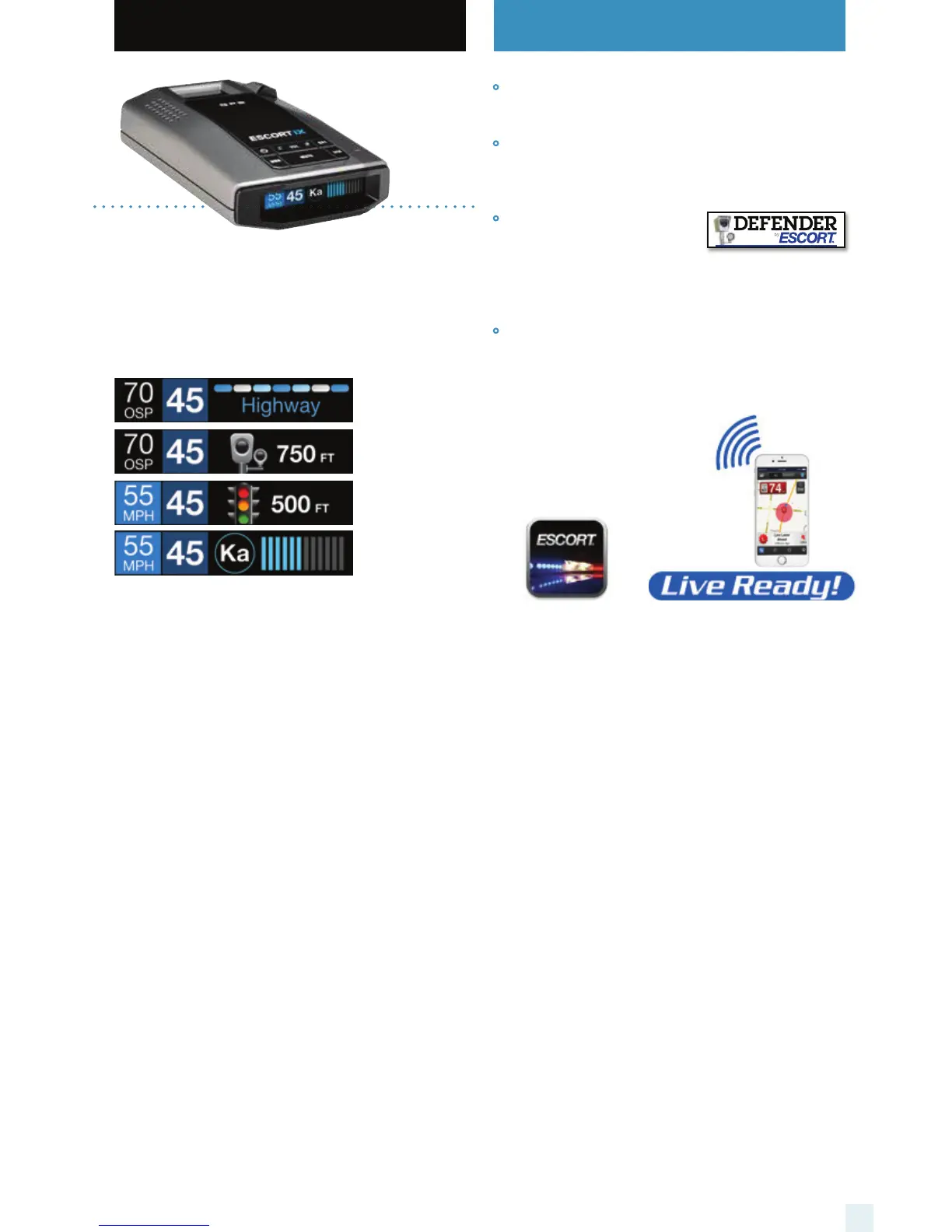 • The ESCORT iX delivers long-range warning on all