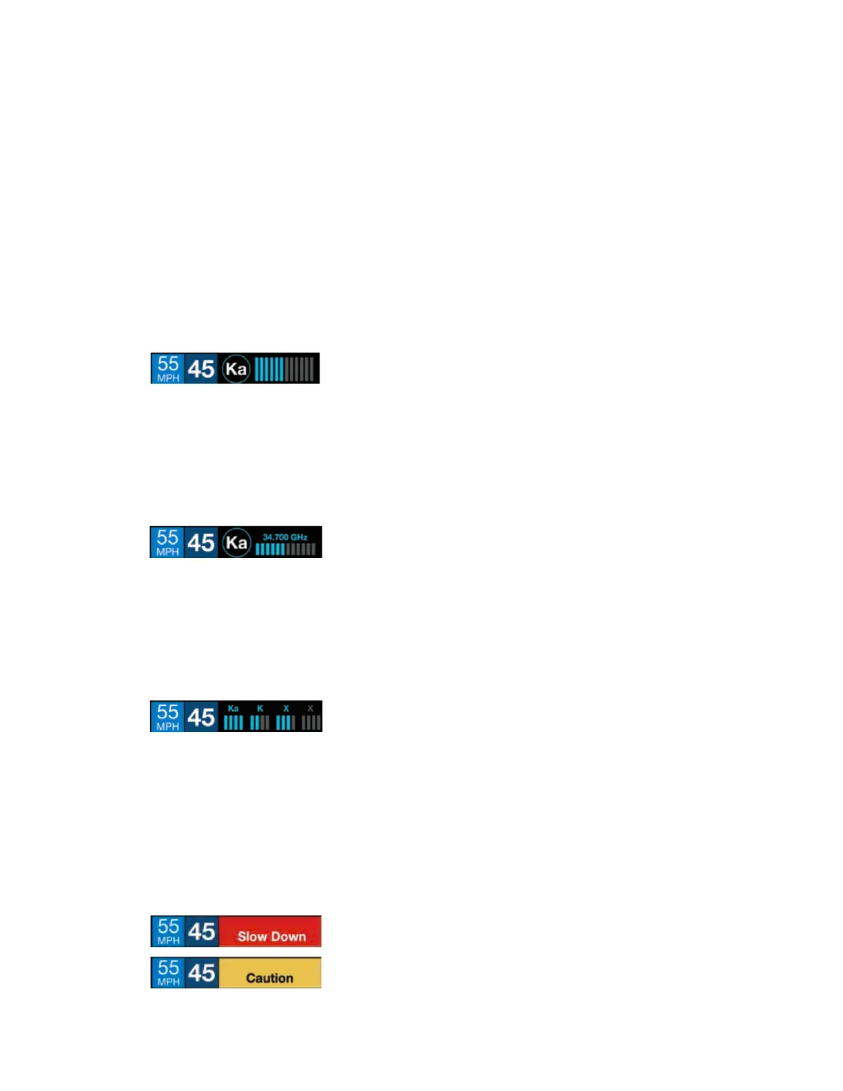 radar, it displays the band of the radar (X, K or Ka) and a bar graph of the signal’s