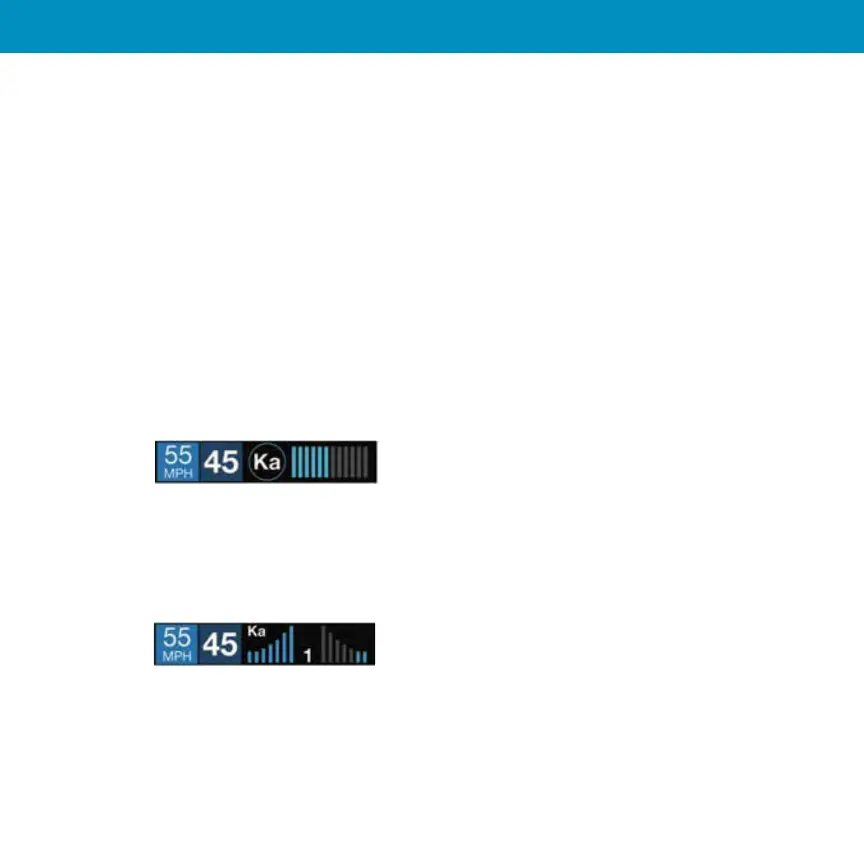 of a single alert. When radar is detected, the band (X, K or Ka) and a bar graph of the signal’s strength