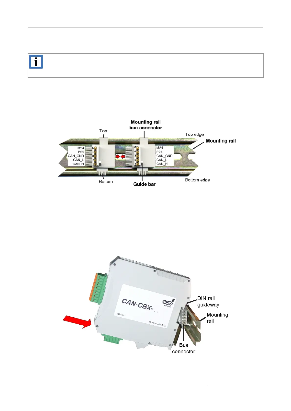 This chapter describes the installation of the module using InRailBus for CAN-CBX-