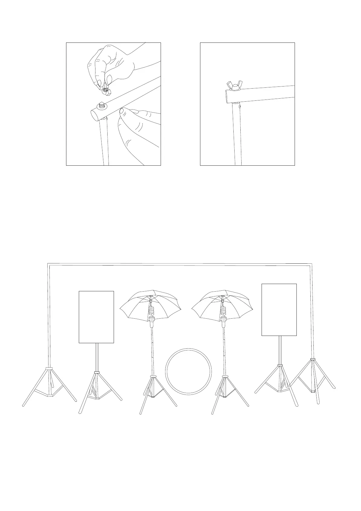 Insert the hole on the outside of the crossbar into the tripod, install the screw pad and screw, and tighten it