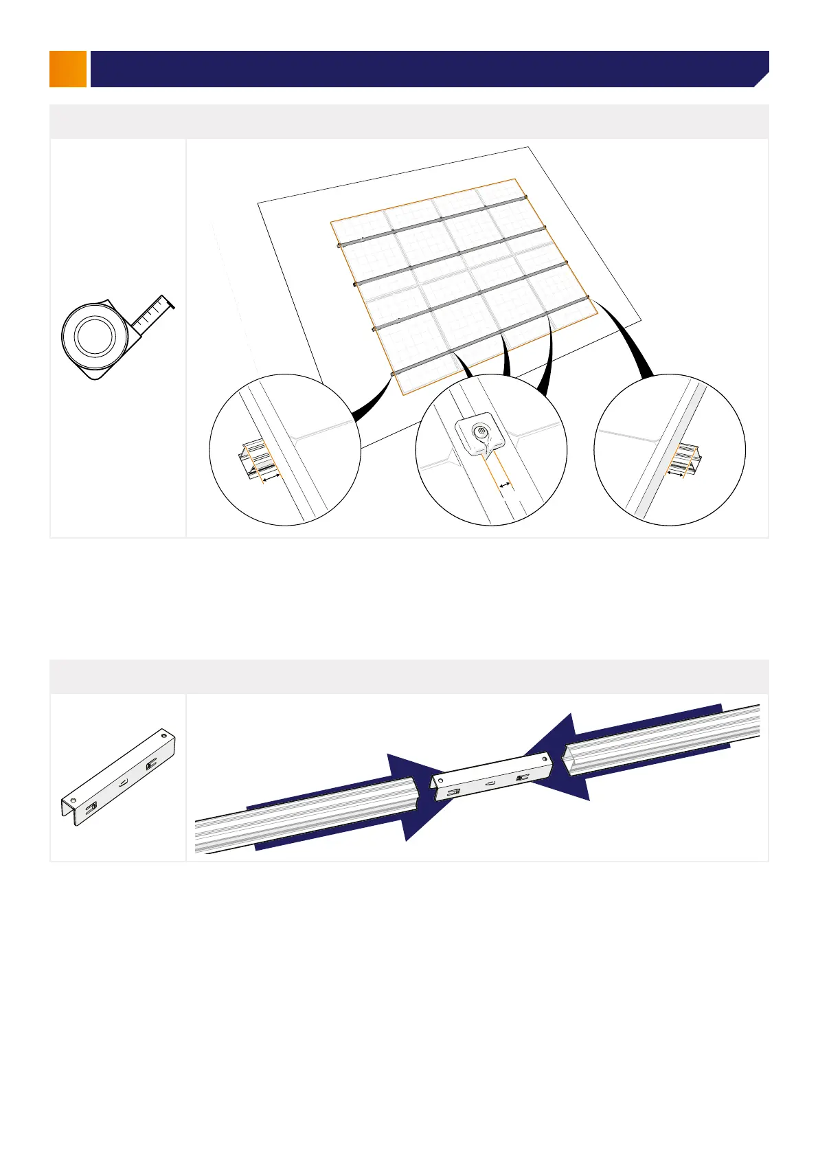 Measurethesolarpanelsandallowanadditional12mmbetweeneachsolarpanelfortheuniversalmoduleclamp.Allow
