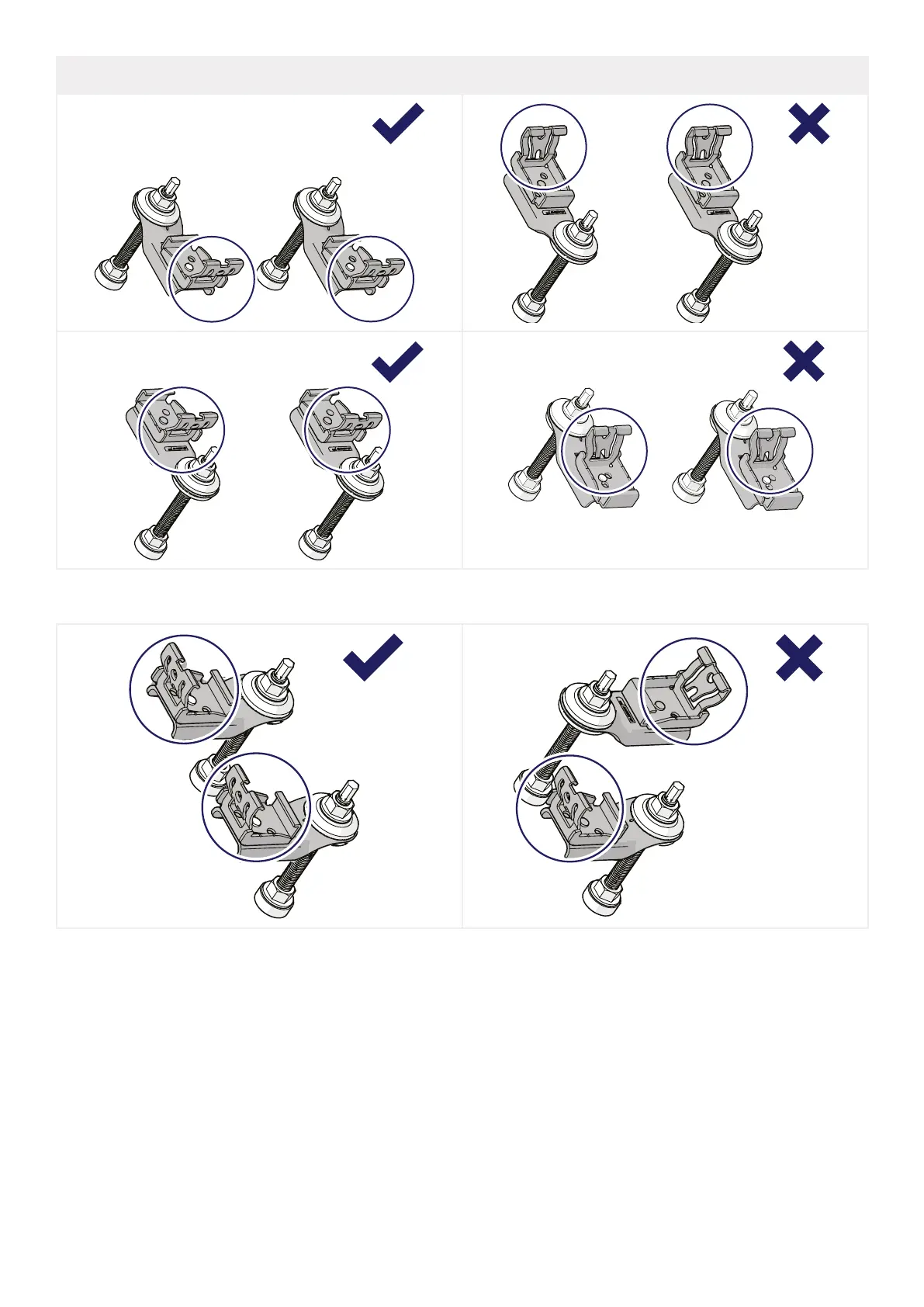 Forhorizontalrailorientation,makesurethatthecabletrayoftheclickconnectionsisalwayspointingdownwards.