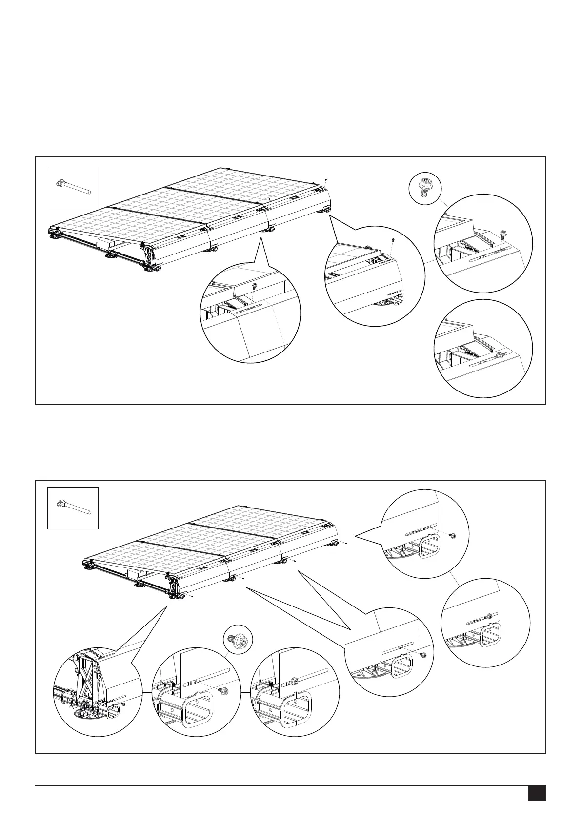 Place the last wind deector at the rear of the solar panels, so that the bottom edge of the wind deector falls between the