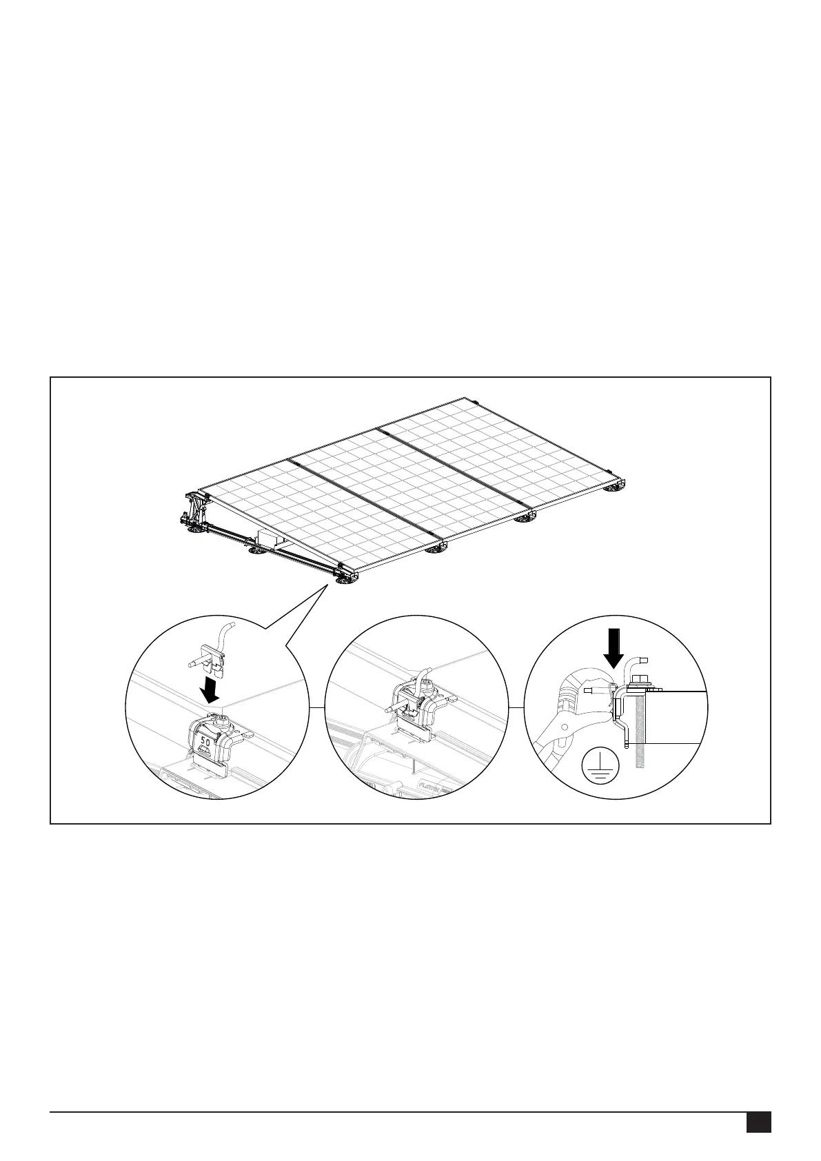 The module clamps ensure good equipotential bonding between panels in the row direction. The rows can easily be