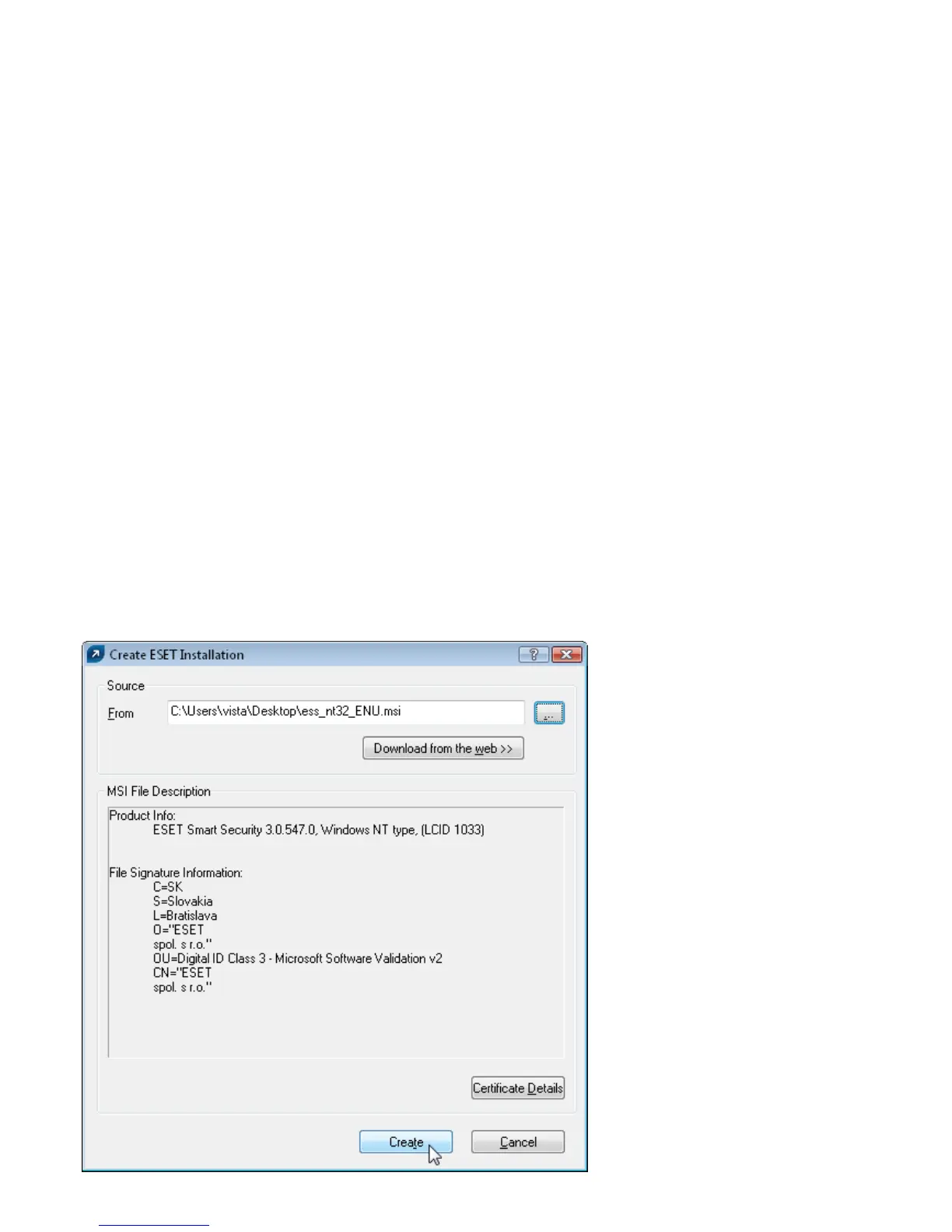 • Click Add... to display the Create ESET Installation window, and then click the ... button to insert the previously