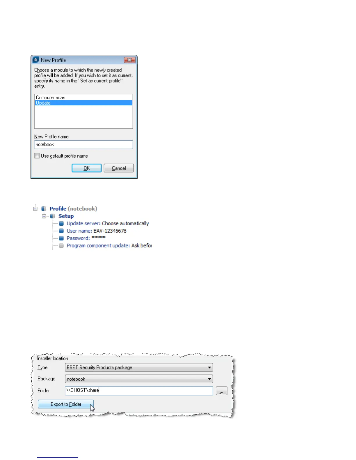 • Enter a New Profile name, such as notebook.
