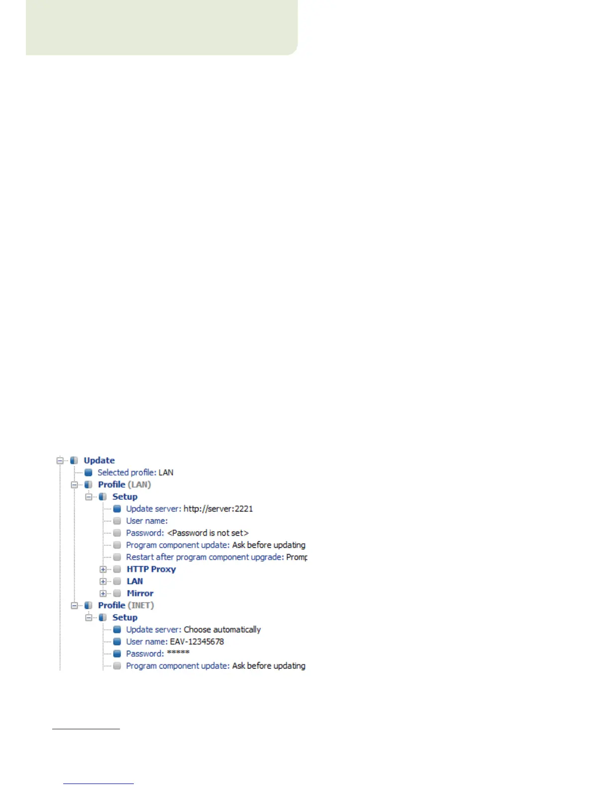 • Create two update profiles, one directed to the Mirror server referred to as “LAN” in the following example and