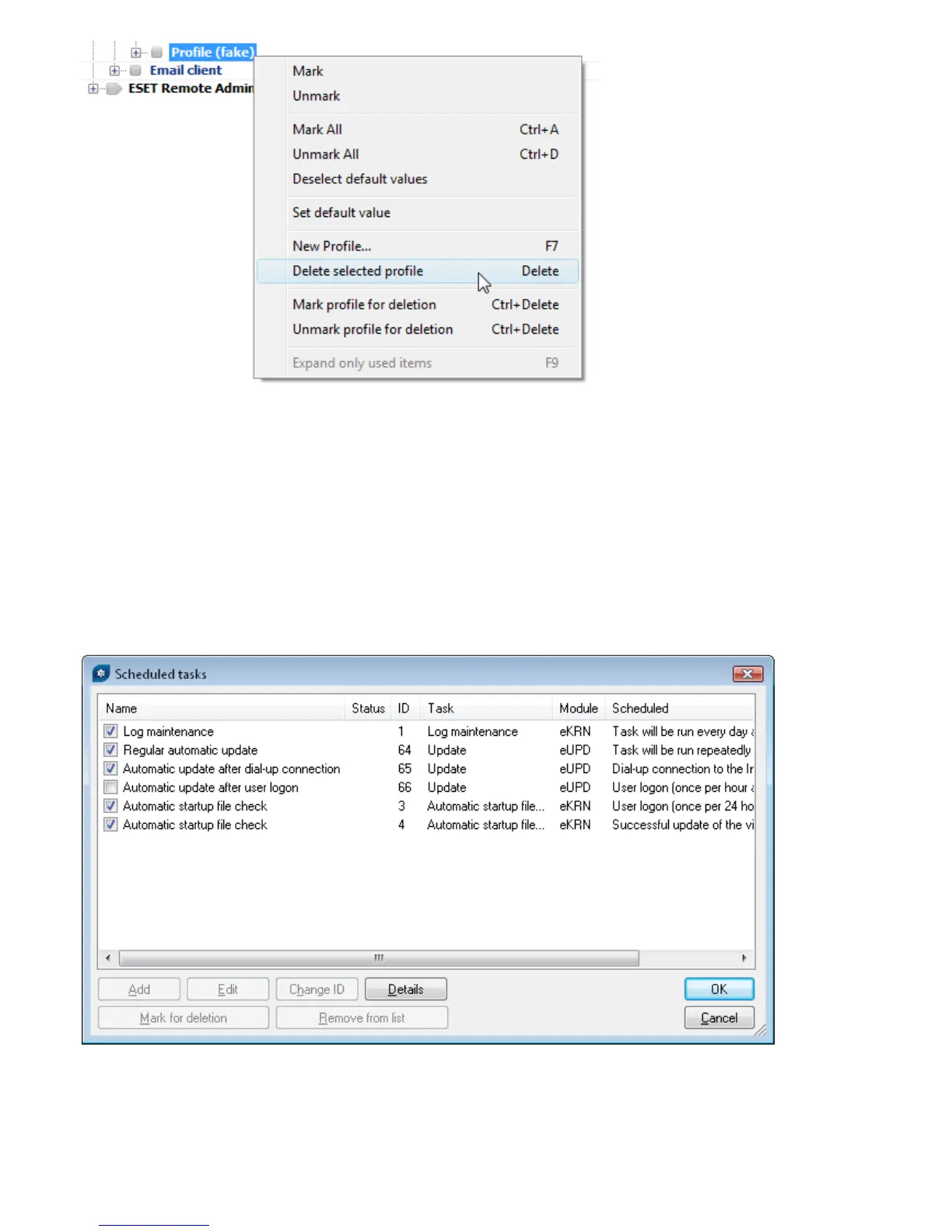 ESET NOD Antivirus > Kernel > Setup > Scheduler/Planner or NOD version / General /Setup / Scheduler/